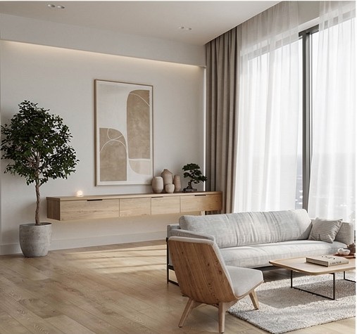 Wchodząc tutaj, masz wrażenie, że granica między wnętrzem a zielenią za oknem, zaciera się. Panuje tu miękka, kojąca aura, gdzie każdy detal - od faktury tynku po delikatność lnu – został dobrany tak, by koić zmysły.