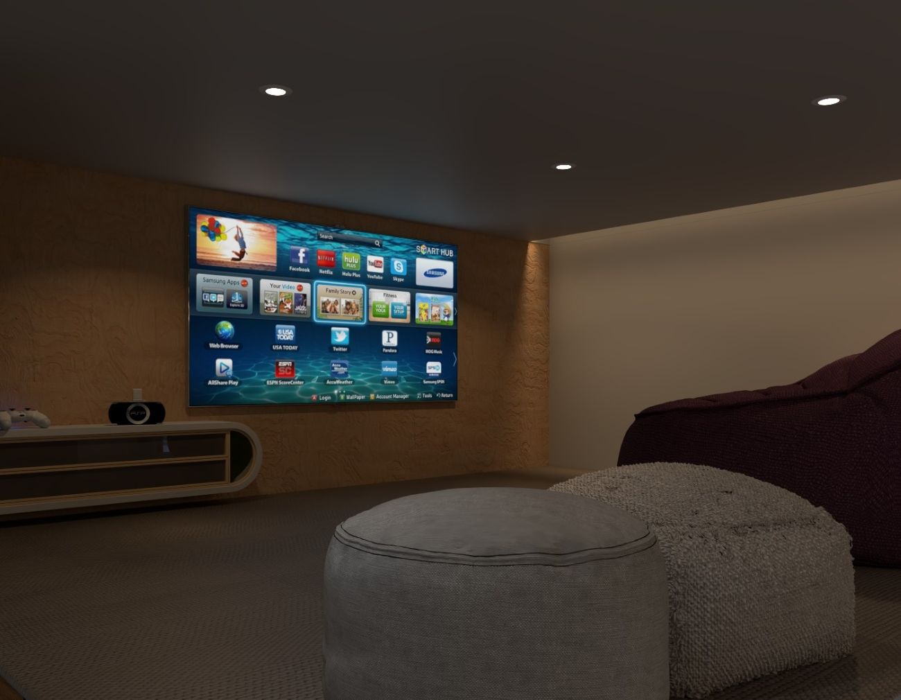 Góra (Gaming & Cinema): Umieszczenie stanowiska gamingowego na piętrze nadaje mu charakteru ekskluzywnego „command center”. To odizolowana przestrzeń, która pozwala całkowicie zanurzyć się w wirtualnym świecie, z dala od codziennego bałaganu.